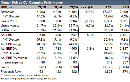 Cemex 2Q24: Solid Performance in Mexico Offsets Softness in the US