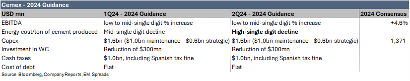 Cemex’s management provided an updated volume guidance for 2024. The guidance for cement and aggregates volumes remains unchanged, with expectations for cement volumes to increase by a flat to low-single-digit percentage and aggregates volumes to decline by a flat to low-single-digit percentage. However, ready-mix volumes are now expected to decline by low-single digits, a deterioration from the previous guidance of a flat to low-single-digit decline. In Mexico, the volume guidance remains unchanged. For the USA, ready-mix volumes are anticipated to decline by mid-single digits, worse than the low-single-digit decline projected in 1Q24, and aggregates volumes are expected to be flat compared to the previously expected low-single-digit increase.