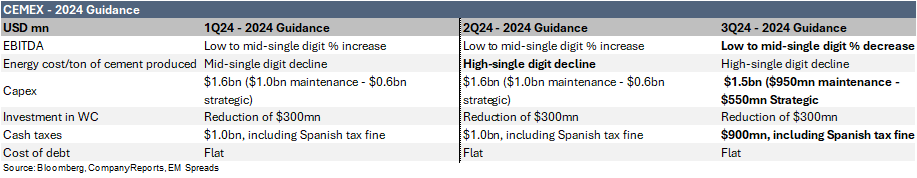 In the third quarter of 2024, Cemex's management revised its consolidated guidance, as highlighted in the table below: