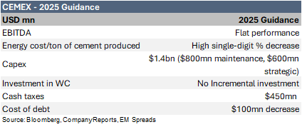 Cemex's management presented its consolidated 2025 guidance, as highlighted in the table below: